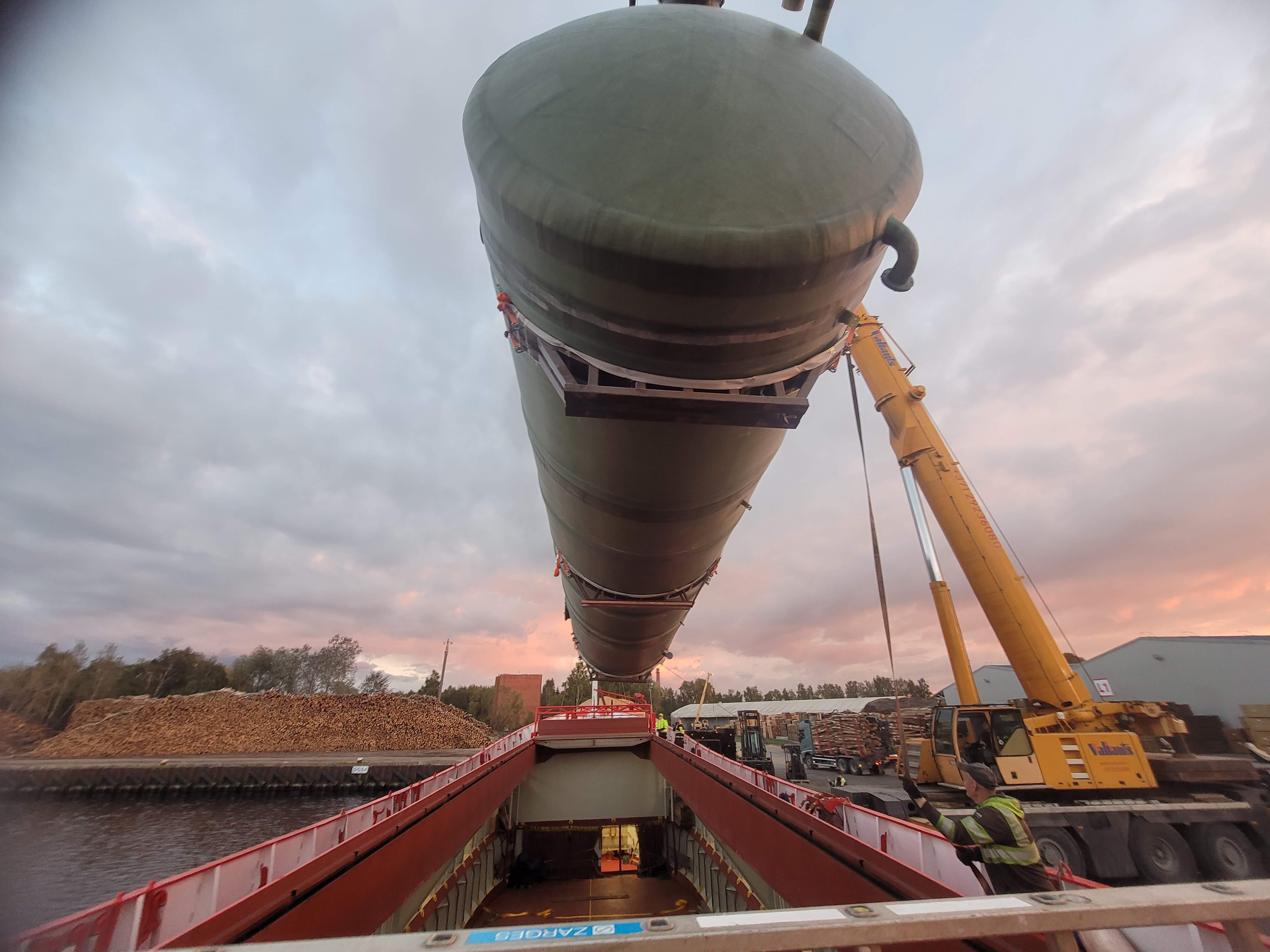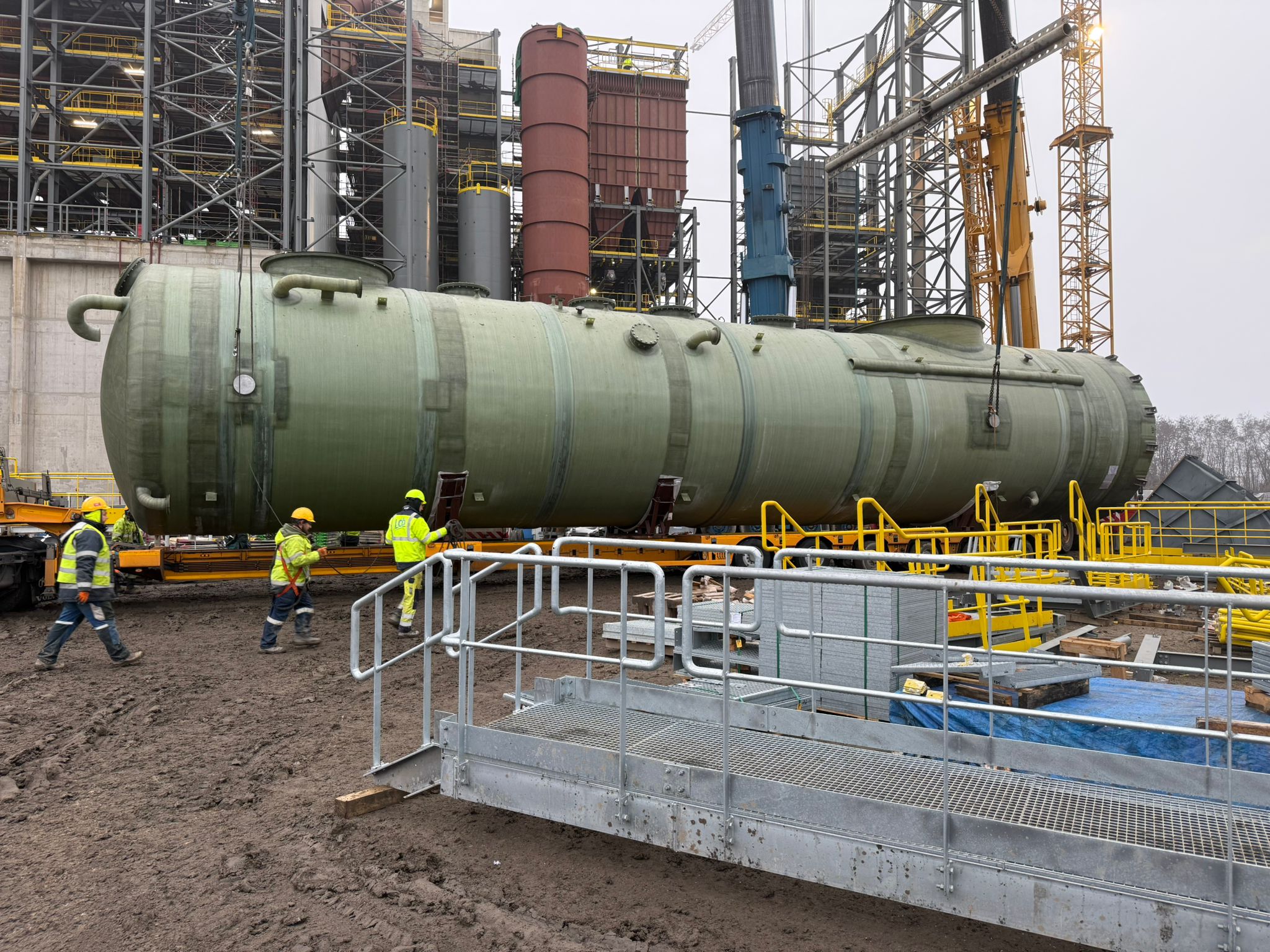 Un scrubber de 23,5 m de long / 5 m de diamètre a été transporté avec succès de Riga (Lettonie) jusqu’au site de Komorany (République tchèque) pour le traitement des fumées de la nouvelle usine d’incinération de 150 000 tonnes/an, exploitée par United Energy.
